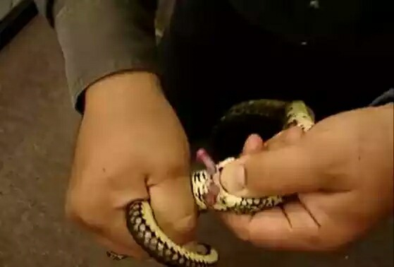 蛇为什么有两个丁丁? 很多蛇类和爬行类的动物都是长了2个丁丁的,都是在靠近足的位置长出来的。 科学家证实生殖器官都是从泄殖腔的胚胎组织分化而来,蛇的泄殖腔的胚胎组织向他周围的细胞发出信号,这些信号就是要制造生殖器的,而且一下子就制造了2个,为什么泄殖腔的胚胎组织要发出这样的信号,科学家正在研究! 蛇的丁丁样子和交配方式图: 懂行的人,只要用力一挤就可以挤出蛇的两个丁丁,如下图 ![]() 下面是一条公蛇和母蛇在交配,过程还以为是两条蛇在打架 ![]() 缠绕在了一起 ![]() |
