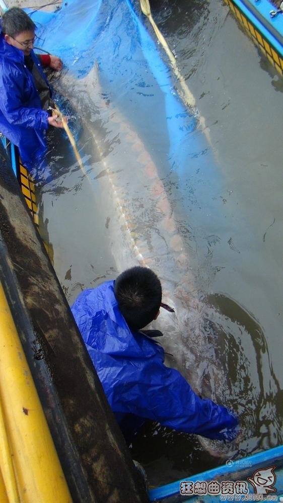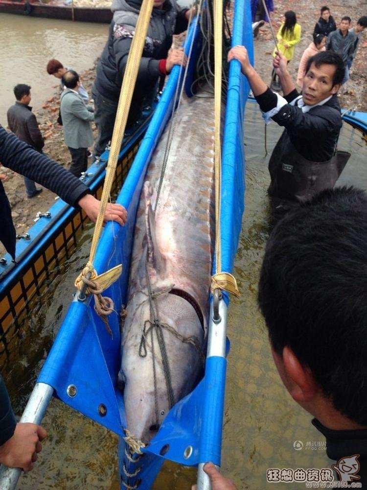 世界上最大的中华鲟照片,体长3.3米重量达700余斤