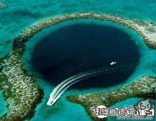 2.大蓝洞(伯利兹城,灯塔暗礁) 壮丽的大蓝湖位于伯利兹外海约43英里处,离灯塔暗礁的中心距离很近。完 美的圆弧地下水洞深约407英尺(124米),宽达984英尺(300米)。四周由蓝绿色水域围绕,像是一个黑眼睛一般突出。 这个地下水洞是潜水者的向往 之地。然而由于洞壁倾斜,潜水者必须技术高超才可以在水洞里徜徉。奇怪的是,尽管偶尔会有鲨鱼出没,然而大蓝洞里的海洋生物并不多见。 ![]()