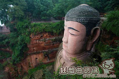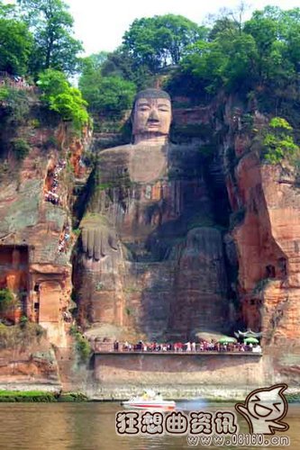著名的乐山大佛就凿刻在凌云寺前不远的山崖上。佛之大虽是意料之中,猛然看到大佛时还是被震撼了。这座世界上最大的弥勒佛坐像背靠山崖,面临三江,慈眉善目,沉静安详,双手抚膝,正襟危坐,与乐山城隔江相望。佛像高71米,比山西大同云岗石窟最高的大佛高出三倍,比炮火毁后的阿富汗巴史安大立佛还要高出18米,数十里外都可以看到它的身影。凭栏看佛,大佛头顶与山齐平,头高14.7米,面宽10米。头顶上每一个螺髻都可以放入一张大圆桌。耳朵长7米,耳孔里可以钻进两个人。沿悬崖边上的陡直栈道,随人潮踉跄前行,下到大佛的脚边。大佛脚背宽达8.5米,上面可以围坐100多人。有人在抱佛脚,有人三叩九拜在大佛脚下,但大佛阅尽人间沧桑,惯听潮起潮落,无论这些如蝼蚁一般渺小的人类在这儿如何折腾,依然不为所动,抑或有所启示,恐怕也只能在心中念一声阿弥陀佛,回头是岸!而粗俗的人们却仍不知乡关何处,彼岸到底在何处。从正面仰望大佛,除了惊叹还是惊叹。20世纪中叶,著名诗人戈壁舟曾写下了“山是一尊佛,佛是一座山。带领群山来,挺立大江边”的诗句。看这个庞然大物,鬼斧神工,内心充满对神力的顶礼膜拜,对自然的敬畏。佛是一座山,一点不假,在他面前,你感叹的是人的渺小,岁月的短暂,又感叹人的力量、智慧和胆略,还有就是生命与自然的和谐,永恒与腐朽的抗争。
