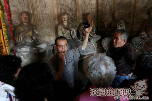 恒通小沙弥给游客讲解资寿寺的相关知识。资寿寺是一个国家级文保单位,经常有全国各地的游客慕名前来。