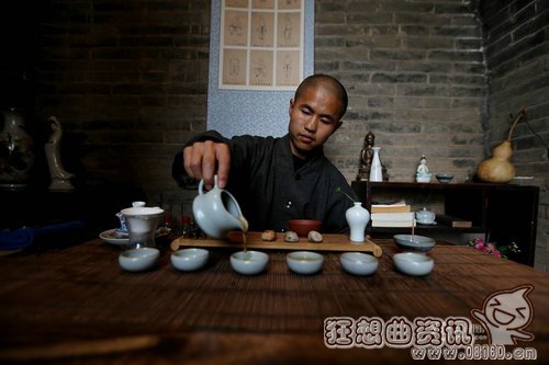 延邦法师正在研究茶道,他说禅茶是相通的。