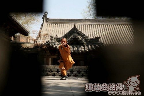 山西灵石资寿寺建于唐咸通11年,以祈求圣佛赐福保佑庶民长寿而得名。2014年8月21日,嵩山少林寺接管资寿寺,年仅28岁的延邦法师成为资寿寺的主持。他带领22名90后的僧人们入驻资寿寺,给这座千年古刹注入了无限生机。图为果妙法师正在给小沙弥们示范武术动作。