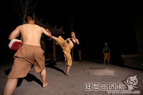 寺院的僧人们正在踢脚靶,他们认为武术实战更能强身健体。