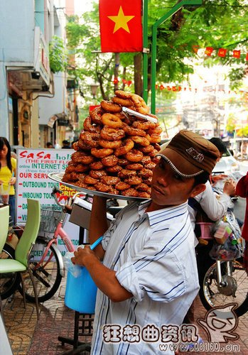 游走在范五老街上的早餐小贩,面包圈看着真香。
