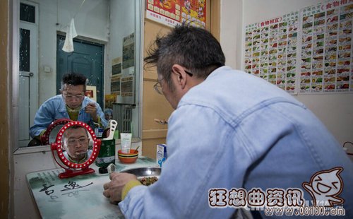 虽然是独居,郭力对一日三餐却十分讲究。墙上贴着一些食物相生相克的表格,“这个很管用”。饭桌前,他正面对着一个小镜子和墙上的大穿衣镜。