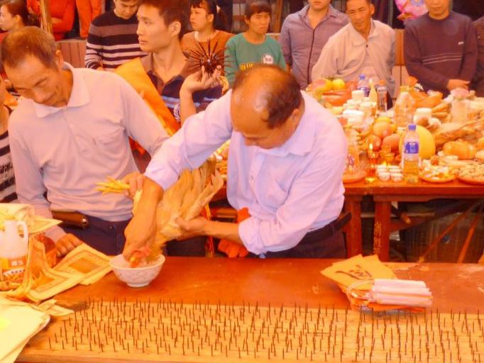 乩[jī]童的人不疼吗 乩童,被称作是一种职业,他们像是西方的灵媒,是一些道教和佛教仪式中,能够跟神明或鬼魂进行沟通的媒介之人。 一般能够被选做乩童的人,心里都是对这些东西无比信仰和追捧之人,他们在进行仪式的时候受的那些苦和伤其实都是很痛的,但是因为信仰,他们不会出声,会忍着。 他们会当做这是自己能够与神明和鬼魂沟通所需要作出的仪式和祭祀。 乩童虽然是称为童,但是不管什么年龄段的人都会有,而且一般能够被选做乩童的人大多数是三类,第一种是先天的,由神明挑选,并施予个人各种症状,也就是一些先天上身体的不足或者缺陷会被称为是上天神明挑选乩童的证明,那个人便从小就会担任乩童,日常都会受这一方面的文化洗脑和教化。 第二种是老一辈的乩童退下来,找一位合适的人来继承衣钵。 最后一种则是后天的,自愿自行选择与被选择成为乩童的人,由他们起童再受祭祀或者仪式现场情境影响而起童,然后成为童乩。 乩童的伤口怎么处理? 现在还比较常见有乩童的地方主要是在台湾和泰国,还有我国福建、广东一部分少数民族和客家会有。 有人曾去参加过这种乩童扶乩,也就是所谓请神请鬼上身的典礼活动时,看见乩童光着膀子,把鞭炮挂在自己身上点燃,然后请神,也有的是对自己做一些自残行为,什么拿铜针穿过自己的脸、口腔两侧的脸皮,还有直接拿刀乱砍自己的,任由伤口肆意。 然后进行完仪式的人会被上身,然后与人对话,或者听求人们的诉求之类的,伤口也不会处理,会在短时间类自行愈合,但是最后的情况如何却是无从得知,也有人说可以求乩童做法治愈大病的,至今没被证实。 |