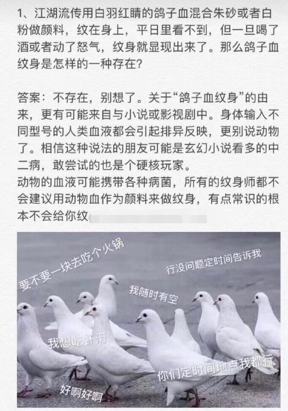 首先声明一下,经过走访询问多位有经验的纹身师,传说中的鸽子血纹身是假的!