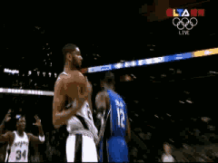 那时候的赛况是这样的,邓肯被三个对手包夹防守着,无从下手,他就突然没有原地起跳就来了一个完美又精彩的大风车扣篮!